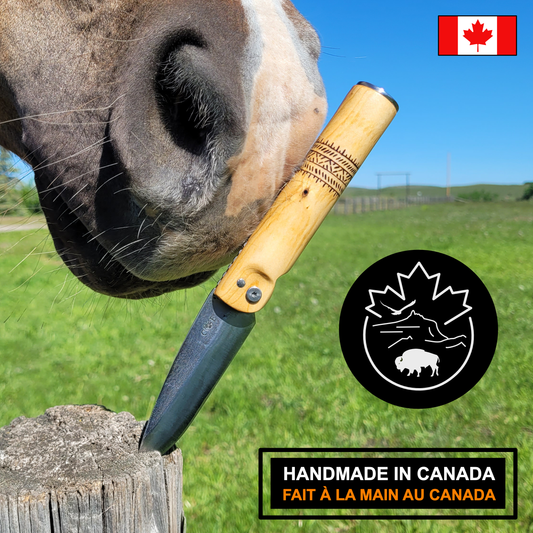 *Our Canadian knives are famous around the world and they leave our ranch almost as soon as they are crafted. If a knife shows SOLD OUT contact us and we will arrange for your knife to be crafted on our next availability
